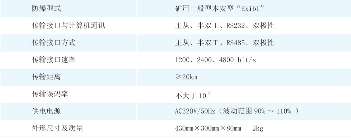 KJ70N-J型數據傳輸接口是KJ128A系統(tong)的(de)主要(yao)配套設(she)備之一,防爆型式為(wei)地面一般型兼本(ben)安輸出。接口將計算機傳輸的(de)非本(ben)安RS232信(xin)號經(jing)轉(zhuan)換并經(jing)光(guang)電隔(ge)離成本(ben)安RS485信(xin)號至監控(kong)分站。傳輸接口采(cai)用先(xian)進、獨特的(de)零延(yan)時(shi)高(gao)可(ke)靠技術(shu)。通過(guo)該(gai)接口可(ke)實現監控(kong)主機的(de)雙機熱備。