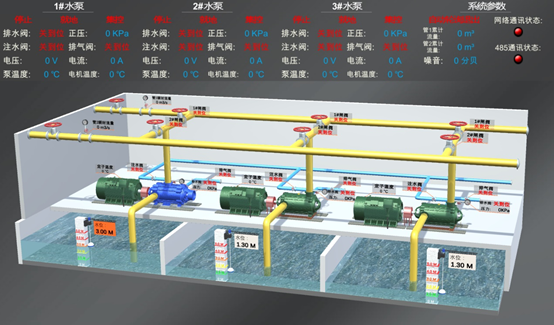 平台可接入水泵(beng)控(kong)制系统,在软件界面上(shang)动态监控(kong)水泵(beng)及其附属设备的运行状(zhuang)况。