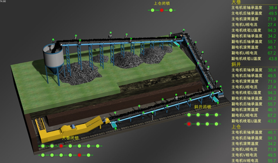 平(ping)台可接(jie)入(ru)皮(pi)带(dai)生(sheng)产(chan)运(yun)输(shu)集控(kong)系统,可以(yi)实时动态(tai)显(xian)示皮(pi)带(dai)运(yun)行状态(tai)。