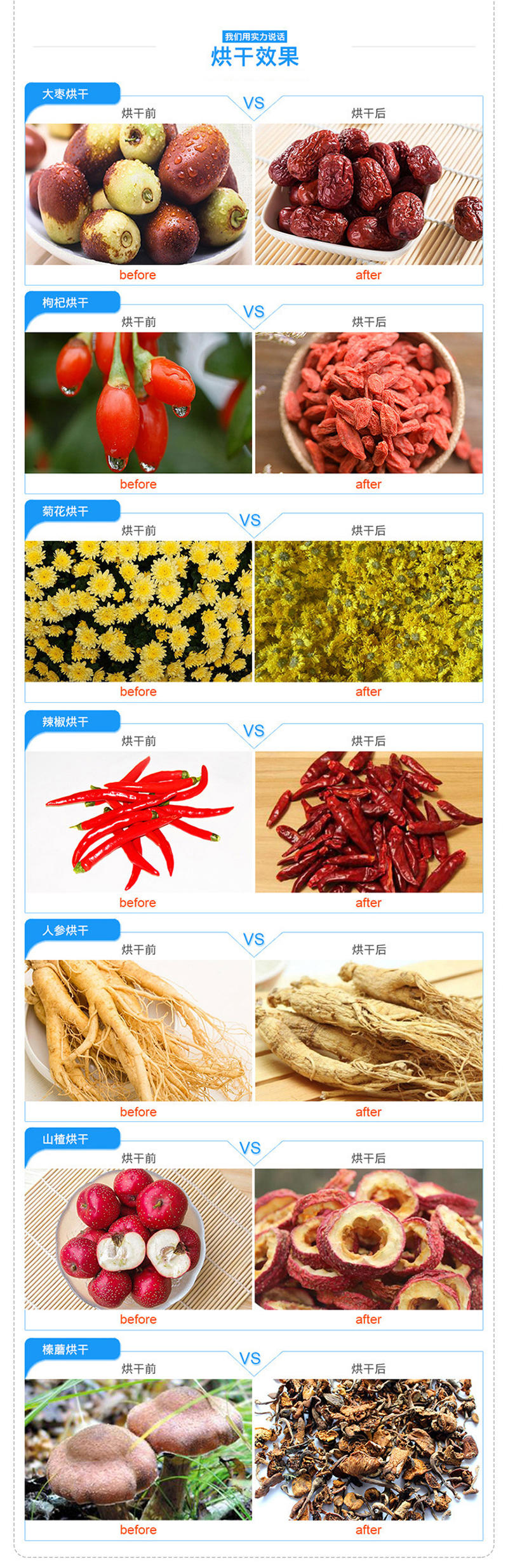 由于空氣能熱泵烘干機不受外界環(huán)境、天氣、季節(jié)、氣候的影響,可24小時連續(xù)工作,并且能夠很好的保障干燥產(chǎn)品的品質(zhì)、顏色、外觀形態(tài)和有效成分,可滿足不同產(chǎn)品的烘干要求,因此可廣泛應用于水產(chǎn)品、肉制品、中藥材、農(nóng)副產(chǎn)品、果蔬類、食品、谷物、種子、衣物、茶葉、紙張、木材、工業(yè)等領域的烘干作業(yè)。